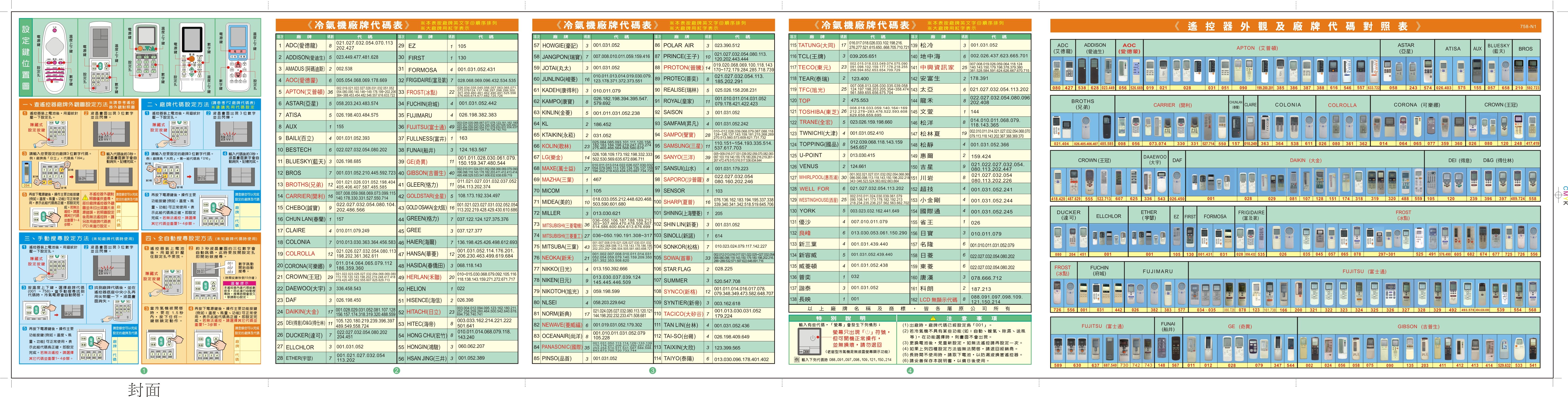 2022新版_適用AC-368 / AC-958 / LX-3A / i35 / AC-808 / RC-LPT6A / LX-570_1111合一冷氣萬用說明書(插孔式)