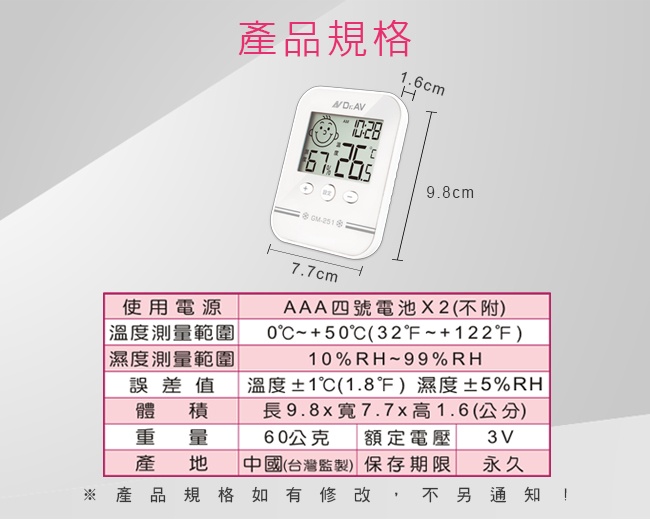GM-27(B) 日式高精度溫濕度計(藍色)
