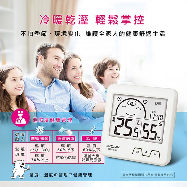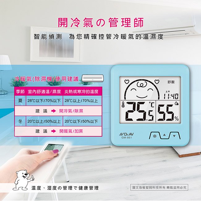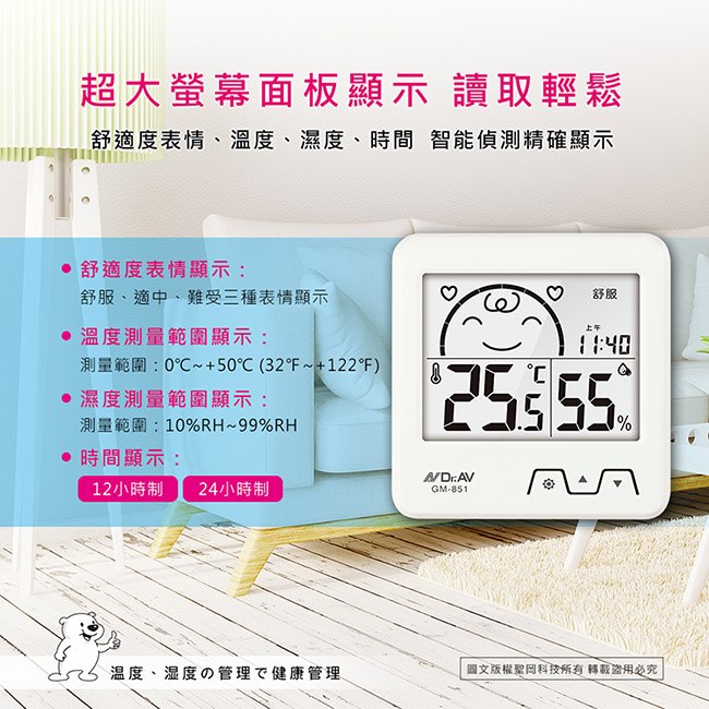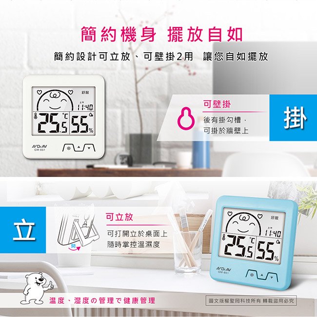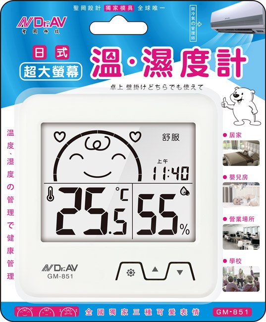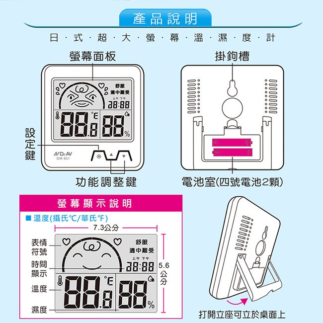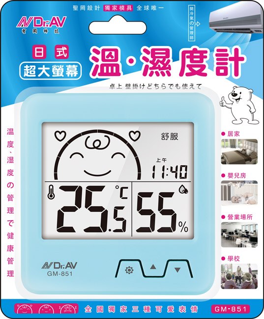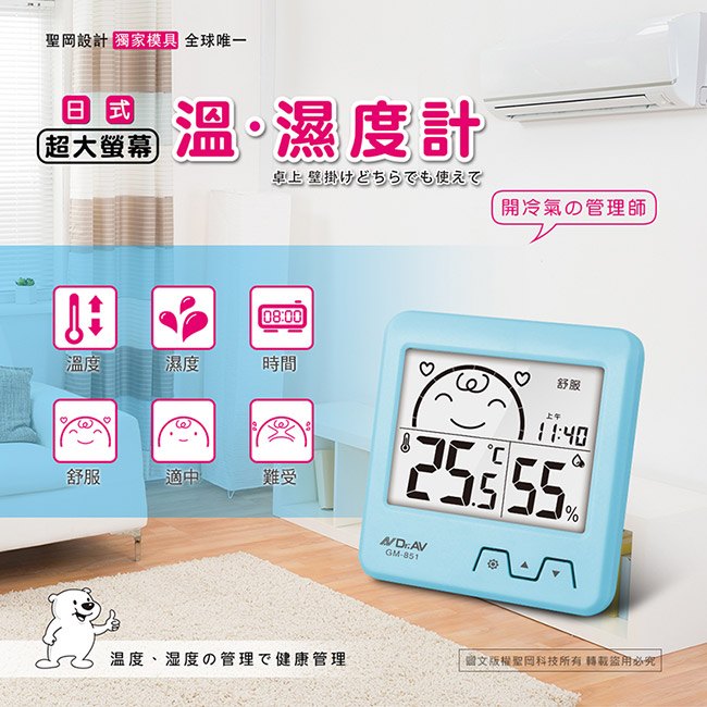 GM-61 日式超大螢幕溫濕度計(藍.白)
