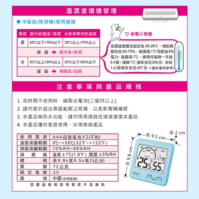 ●溫度、溼度、時間3合一