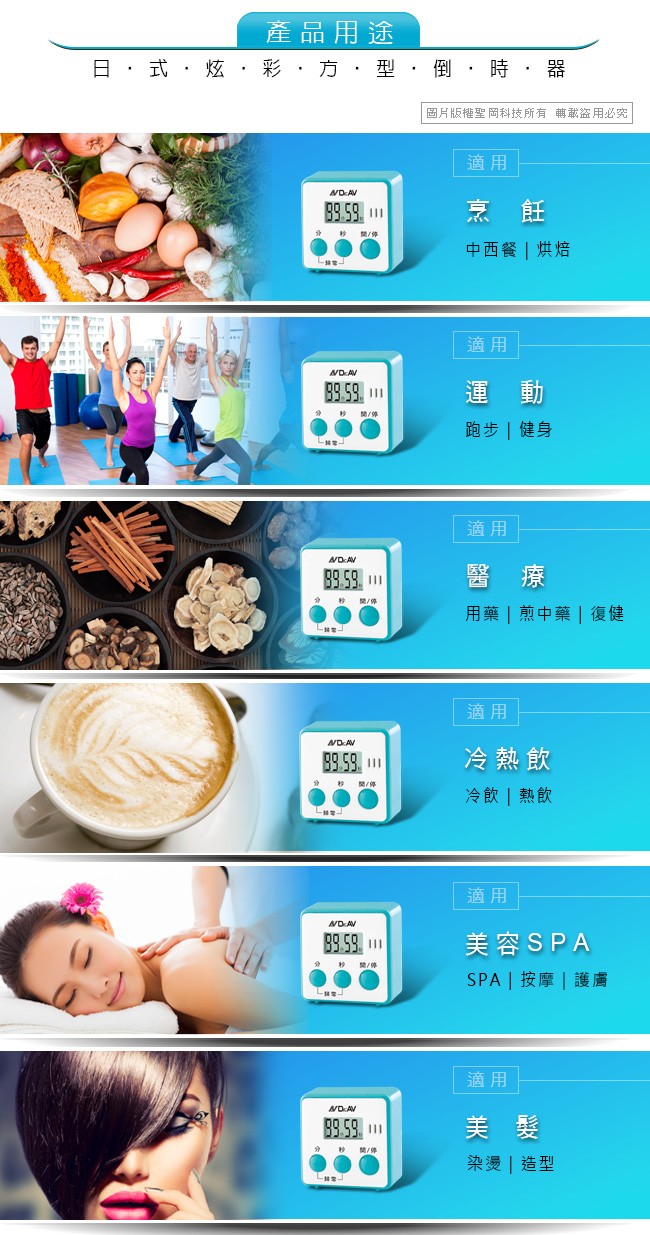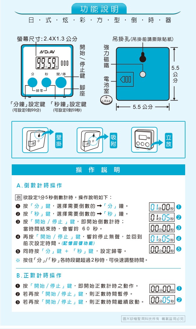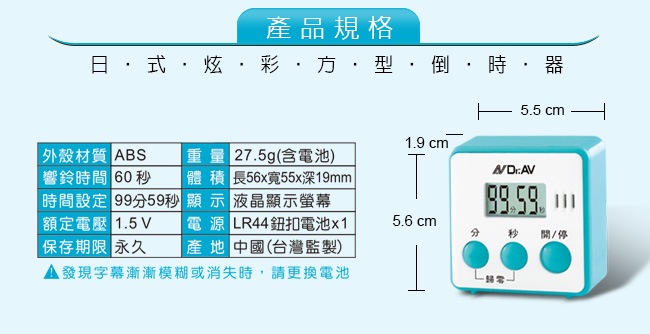TM-A2(B) 日式炫彩方型倒時器(藍色)
