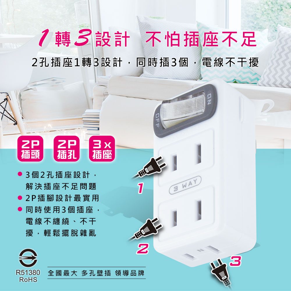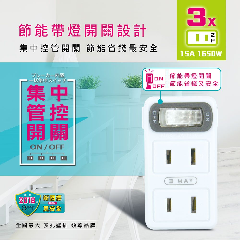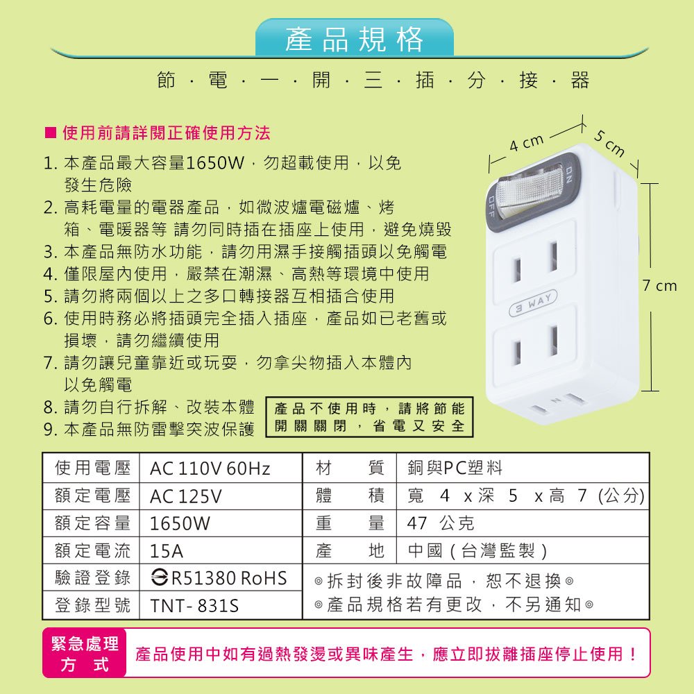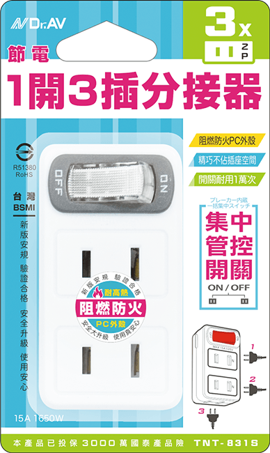 TNT-71S 節電1開3插分接器