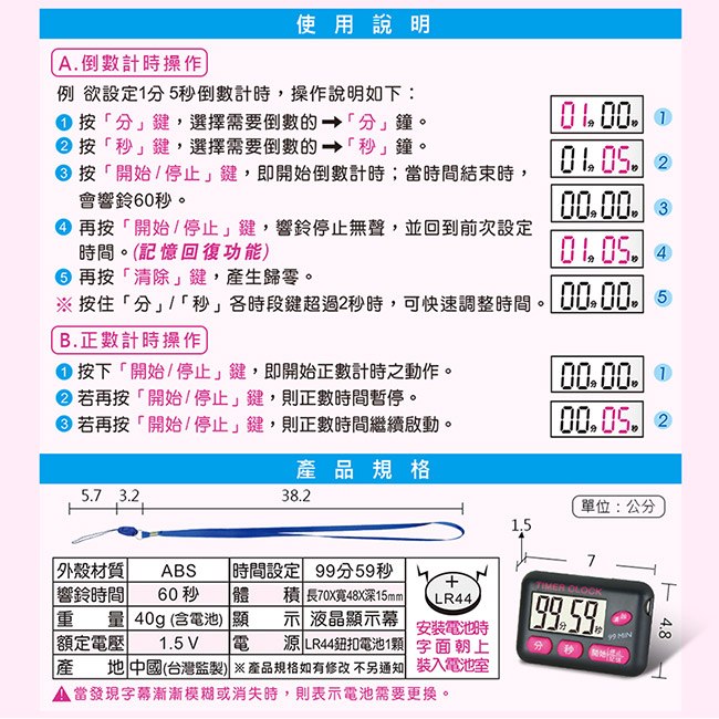 ● 正倒計時,時間可達99分6秒