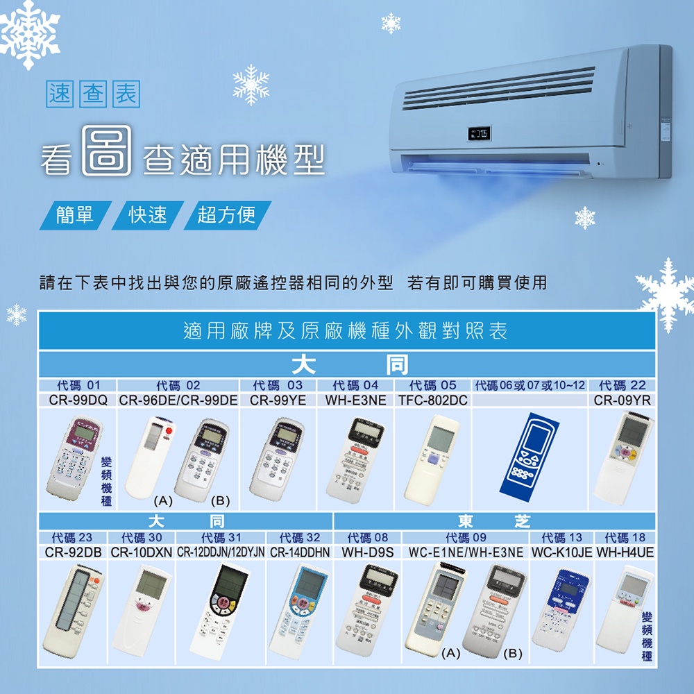 ● 適用大同、東芝、新禾、華菱冷氣全機種