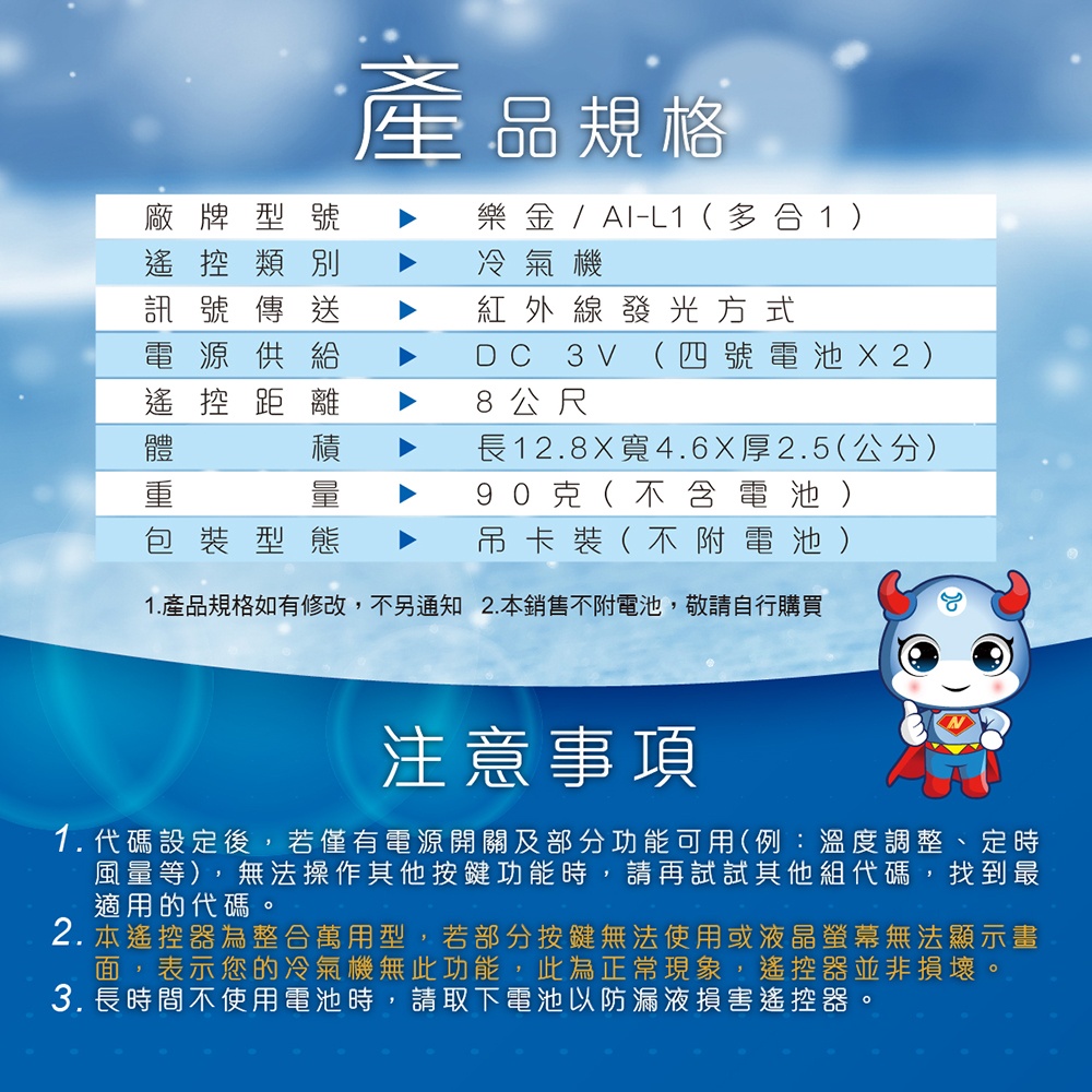 AI-L1 樂金LG專用冷氣遙控器(北極熊系列)