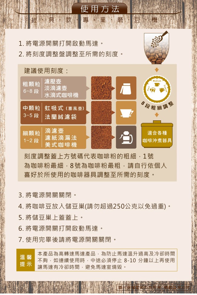 ● 8段粗細研磨度選擇