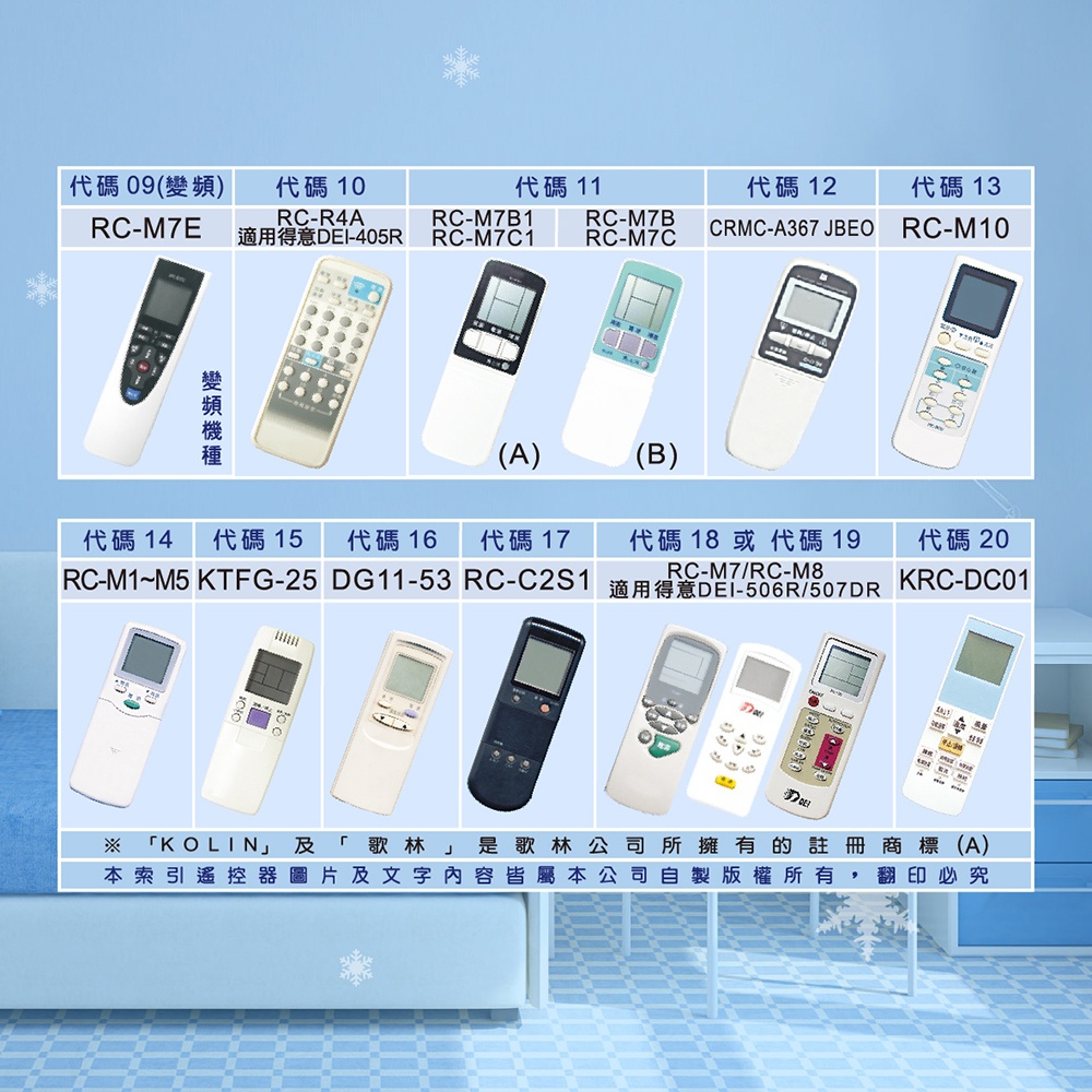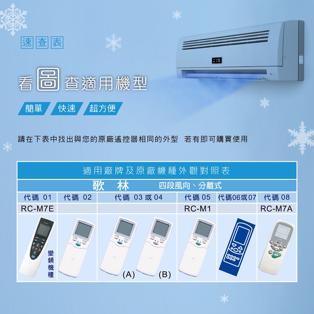● 適用歌林冷氣全機種