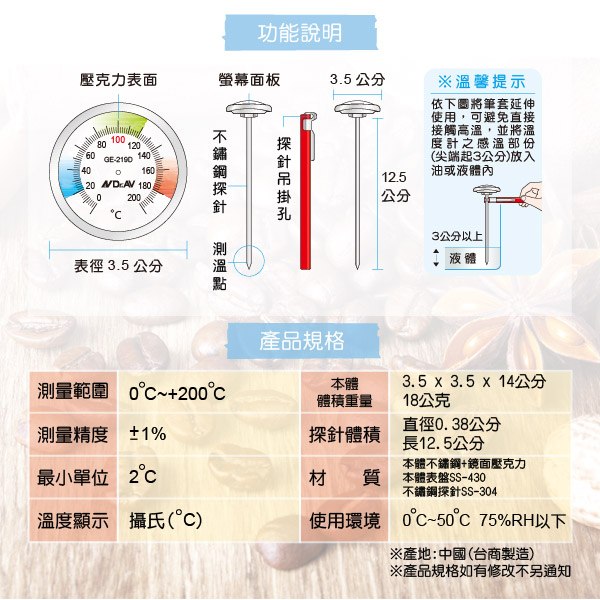 2. 若鍋子較小 或鍋緣較低 請注意溫度計擺放位置
