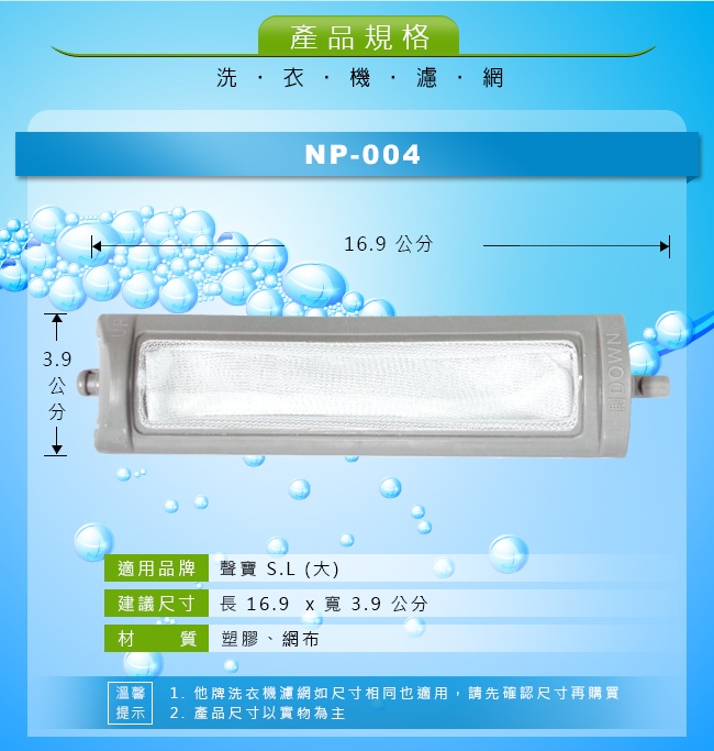 NP-004 聲寶S.L(大)洗衣機濾網(中)