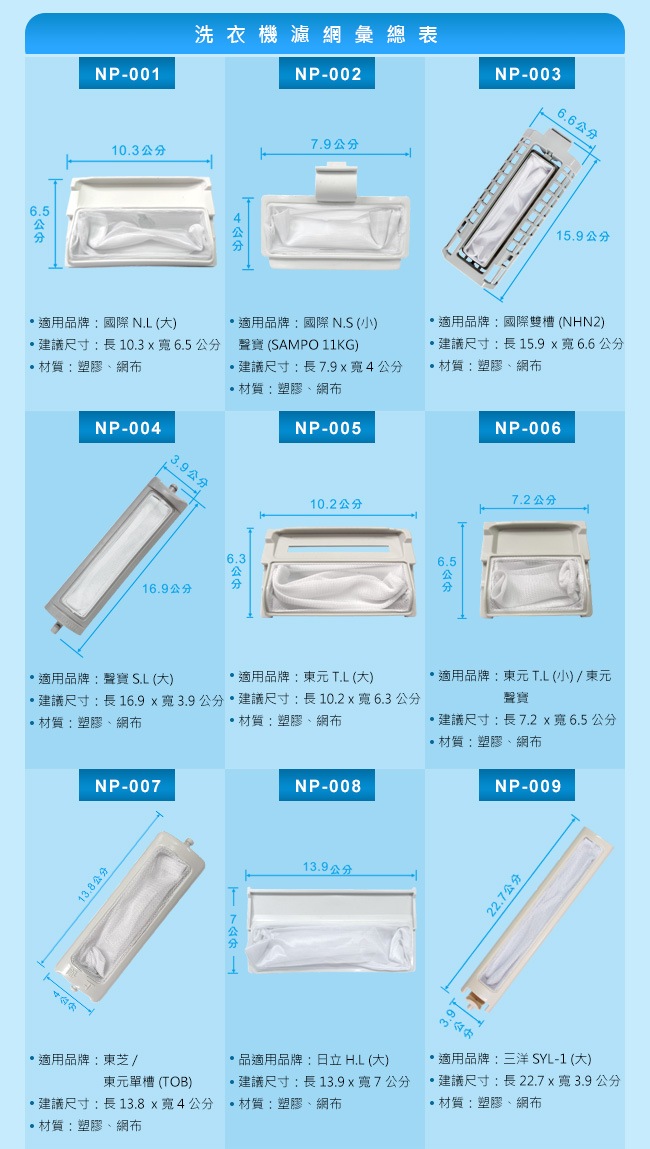 NP-010 三洋SYL(小)洗衣機濾網(小)