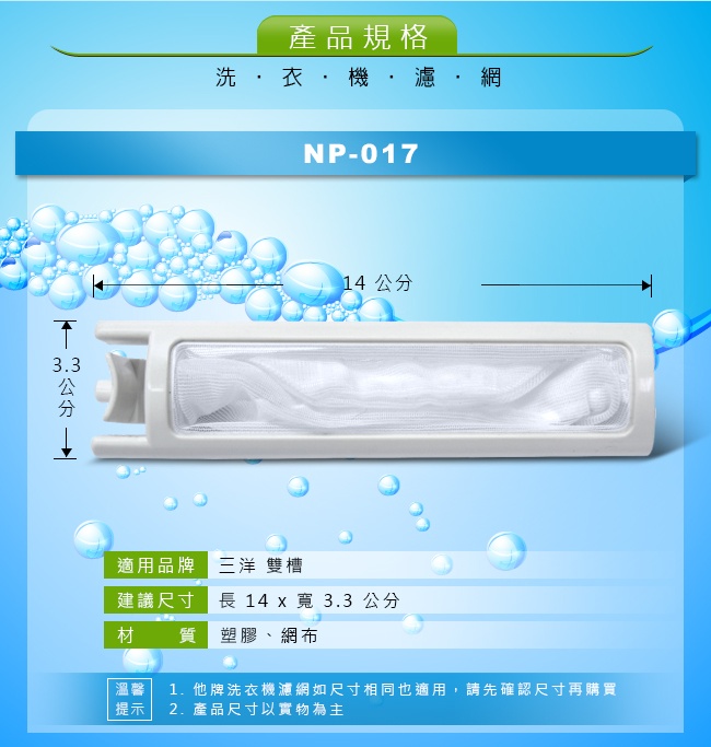 NP-017 三洋雙槽洗衣機濾網(中)