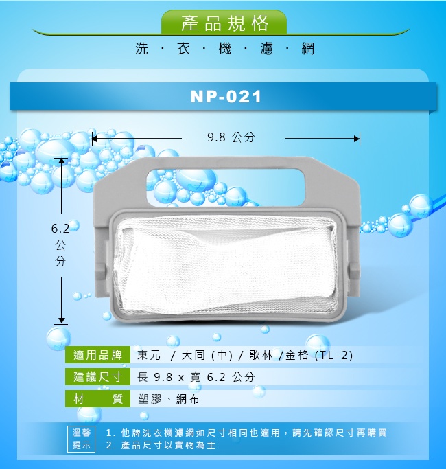 NP-021 歌林/大同/東元/金格(TL-2)洗衣機濾網(小)