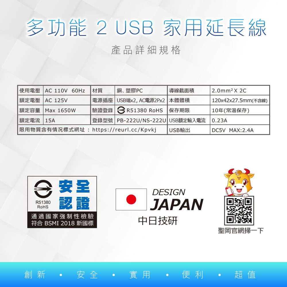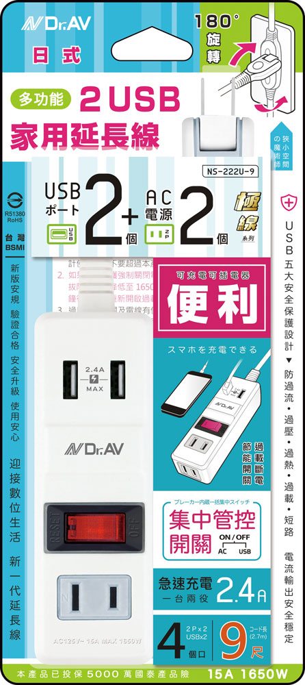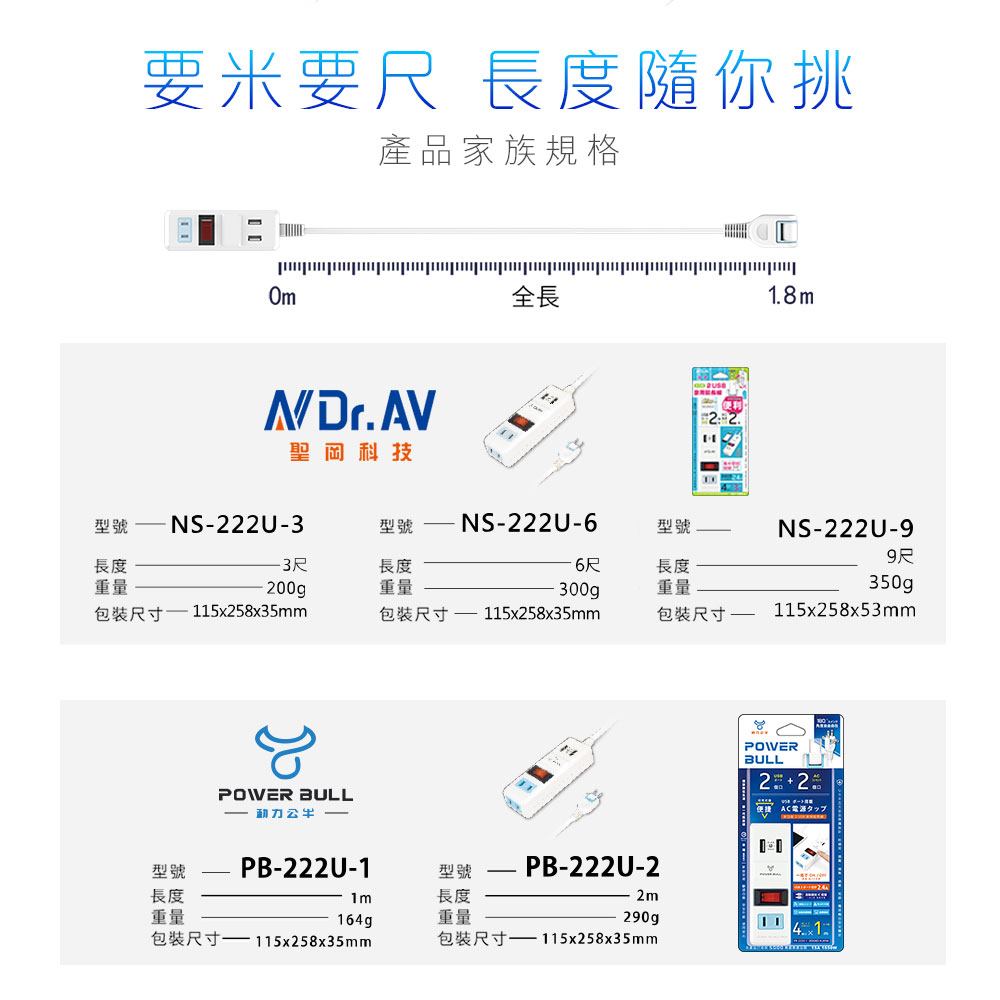 NS-222U-9 多功能2USB家用延長線(9尺)