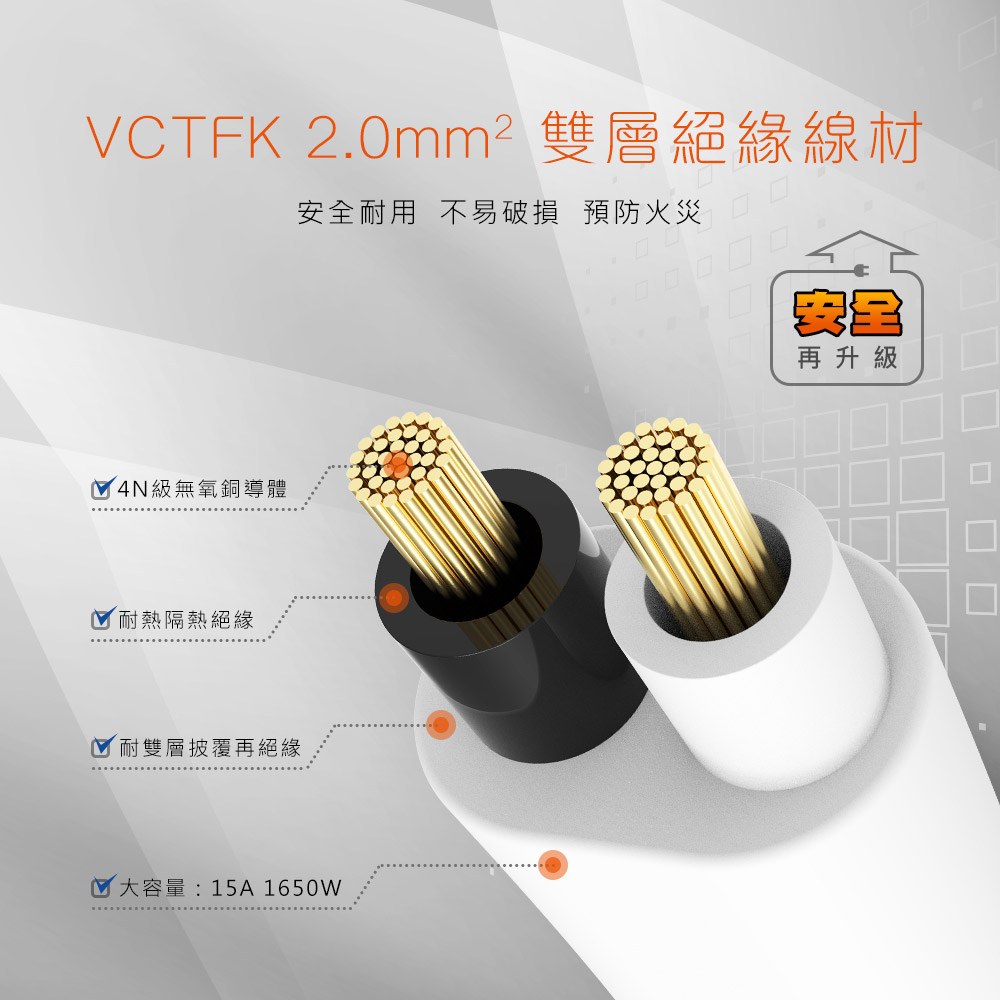 ✔️雙層絕緣加粗電線-可承受15A 5433瓦