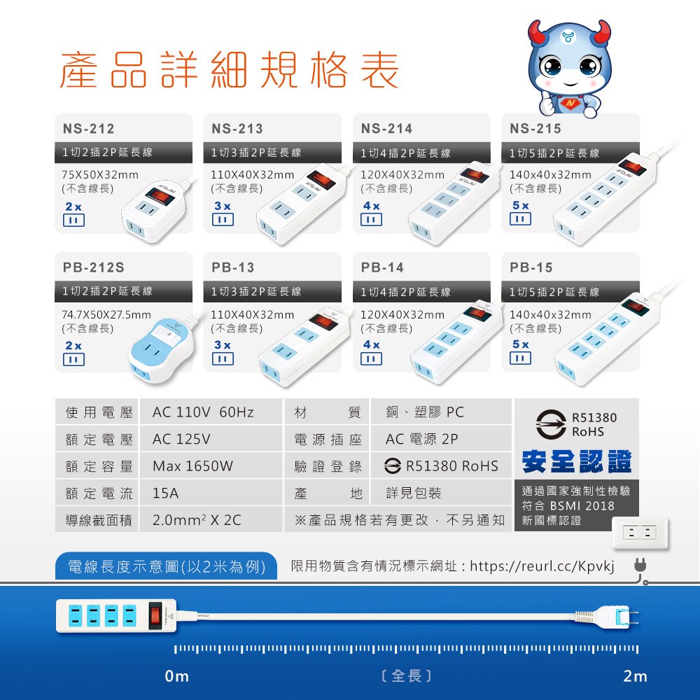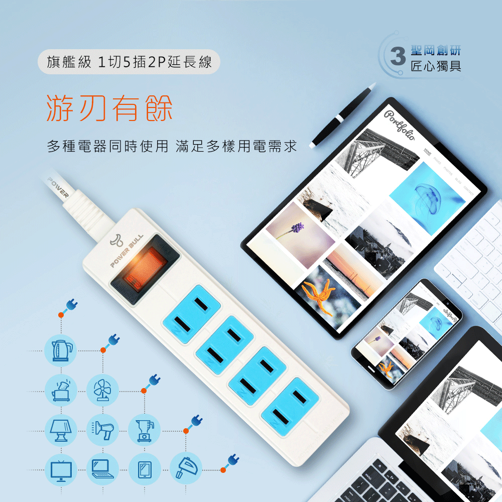 PB-15 旗艦級1切5插2P延長線(1/2/3米)