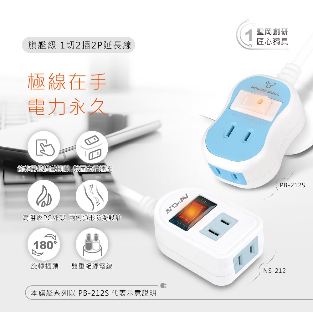 PB-212S-3 旗艦級1切2插2P延長線(3米)