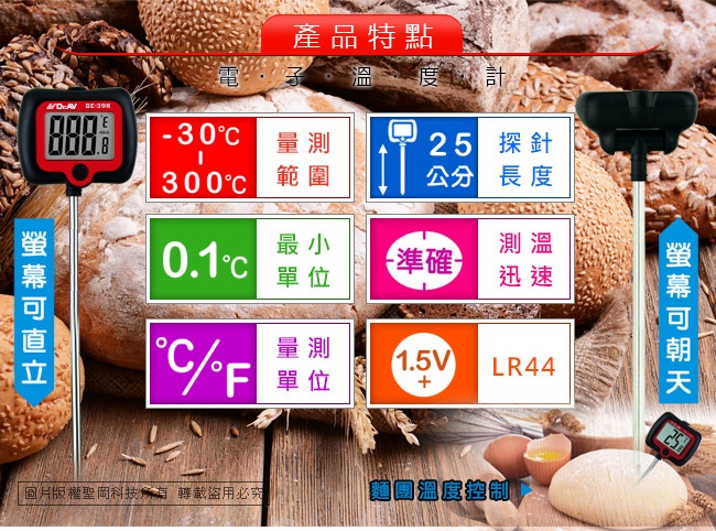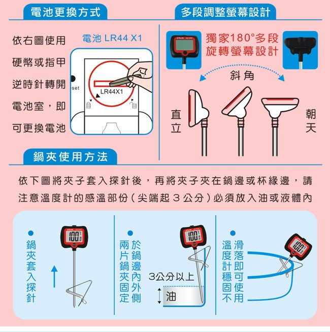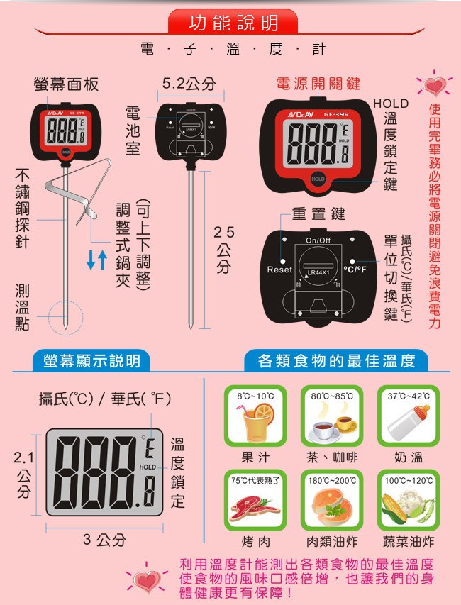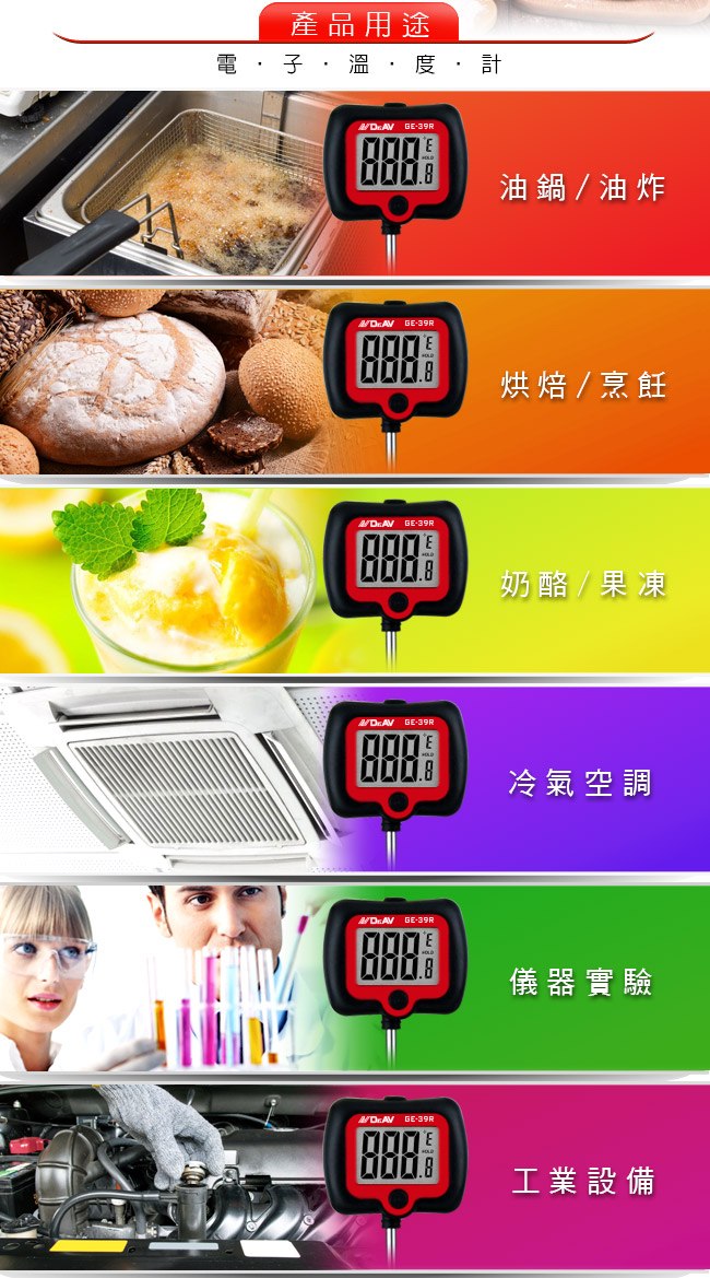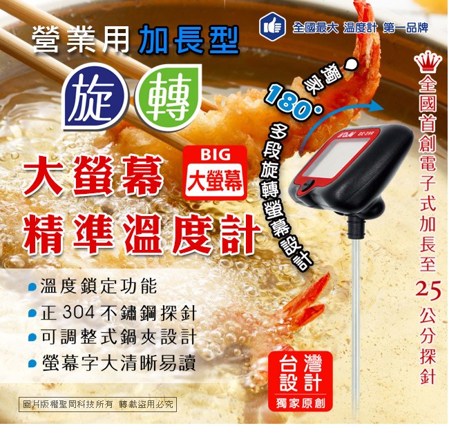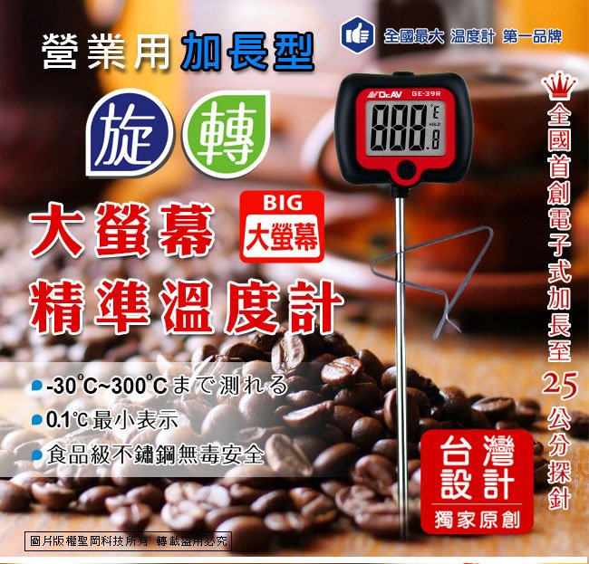 GE-39R 加長型旋轉大螢幕精準溫度計(黑)