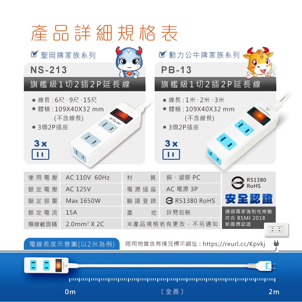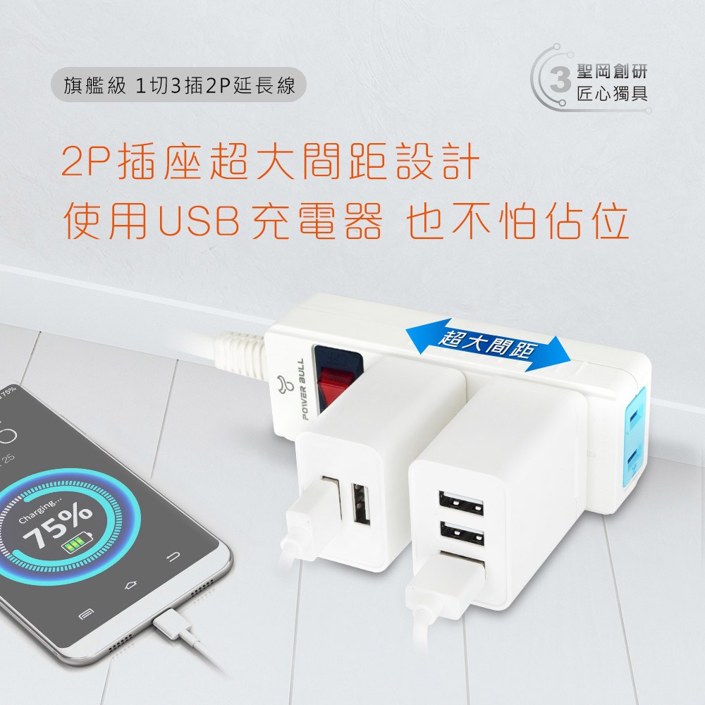 PB-13-3 旗艦級1切3插2P延長線(3米)