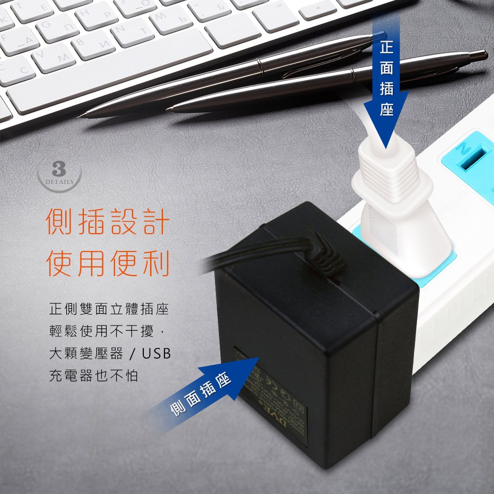 ●雙面立體插座,輕鬆使用不干擾