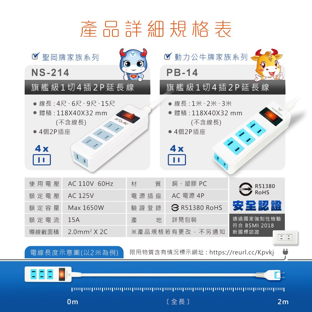 NS-214 旗艦級1切4插2P延長線(4/6/9/15尺)