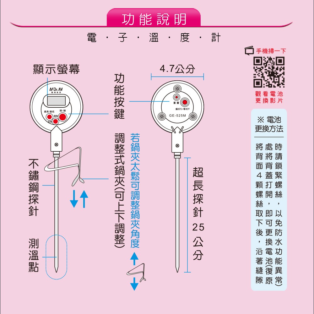 GE-6M 專業級加長型多用途電子溫度計
