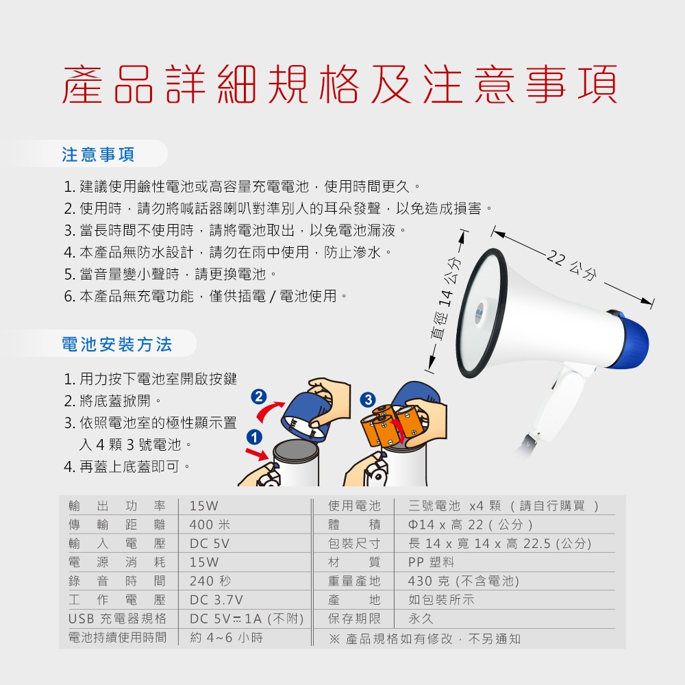 (2)3號電池X4(請自行購買)