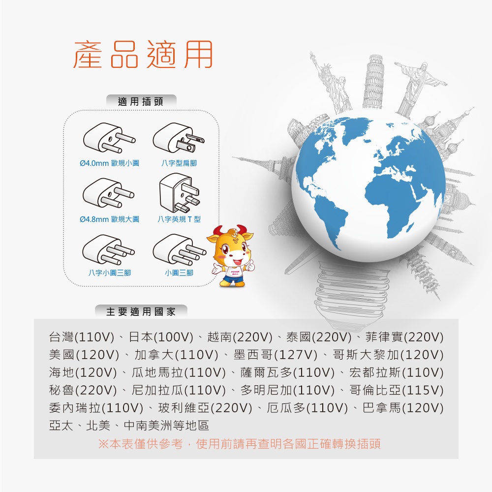 ●適用世界各國插頭