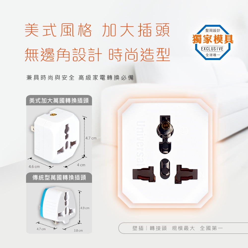 ●美式風格加大插頭,無邊角設計時尚造型,兼具時尚與安全高級高價家電轉換必備!