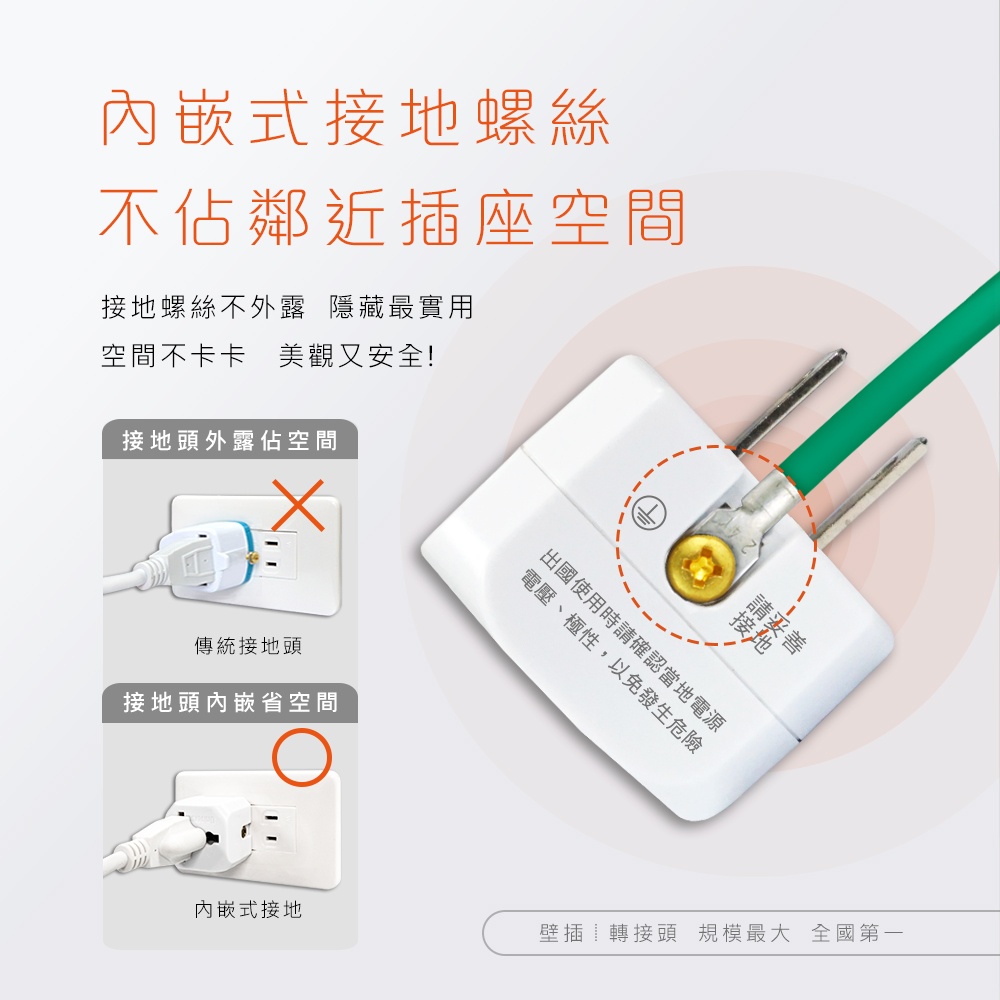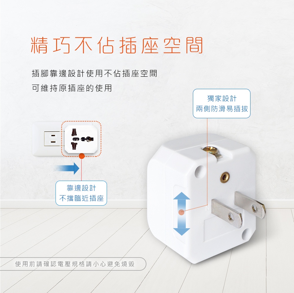 ●插腳靠邊精巧不佔插座空間,可維持原插座的使用