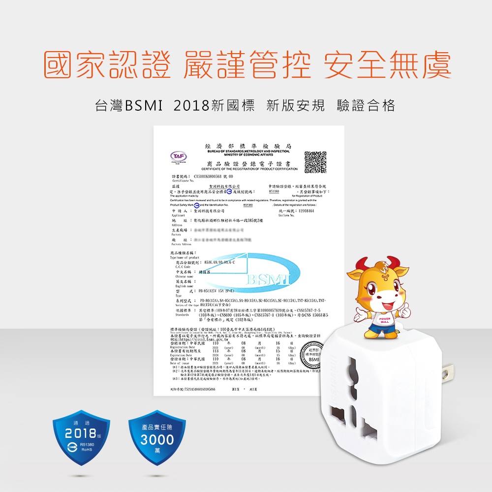 ● 通過BSMI 2018新版安規,安全再升級