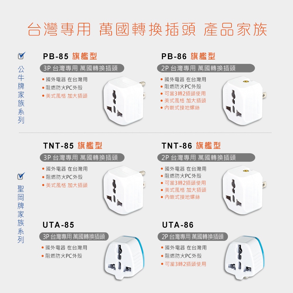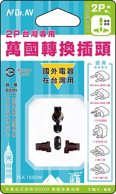 TNT-6 3P台灣專用萬國轉接插頭