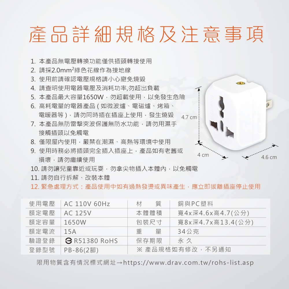 萬國轉換插頭 台灣用
