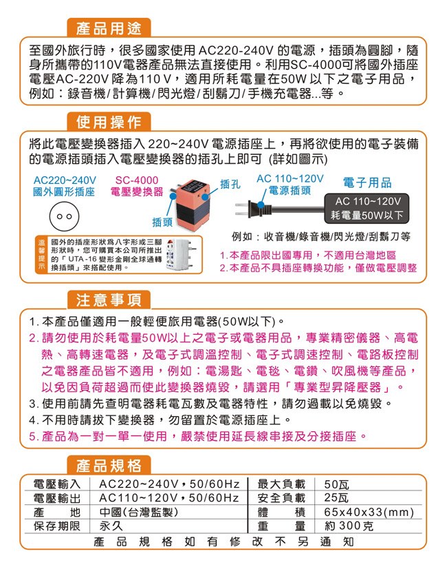 ●國內、國外電器皆可用,用途廣泛讓生活更便利