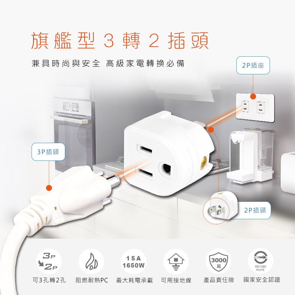 ●美式風格加大插頭,無邊角設計時尚造型,兼具時尚與安全高級高價家電轉換必備!