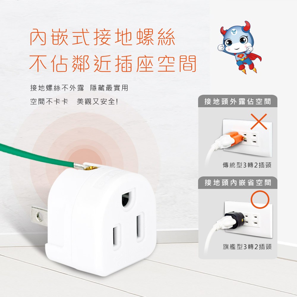 ●插腳靠邊精巧不佔插座空間,可維持原插座的使用