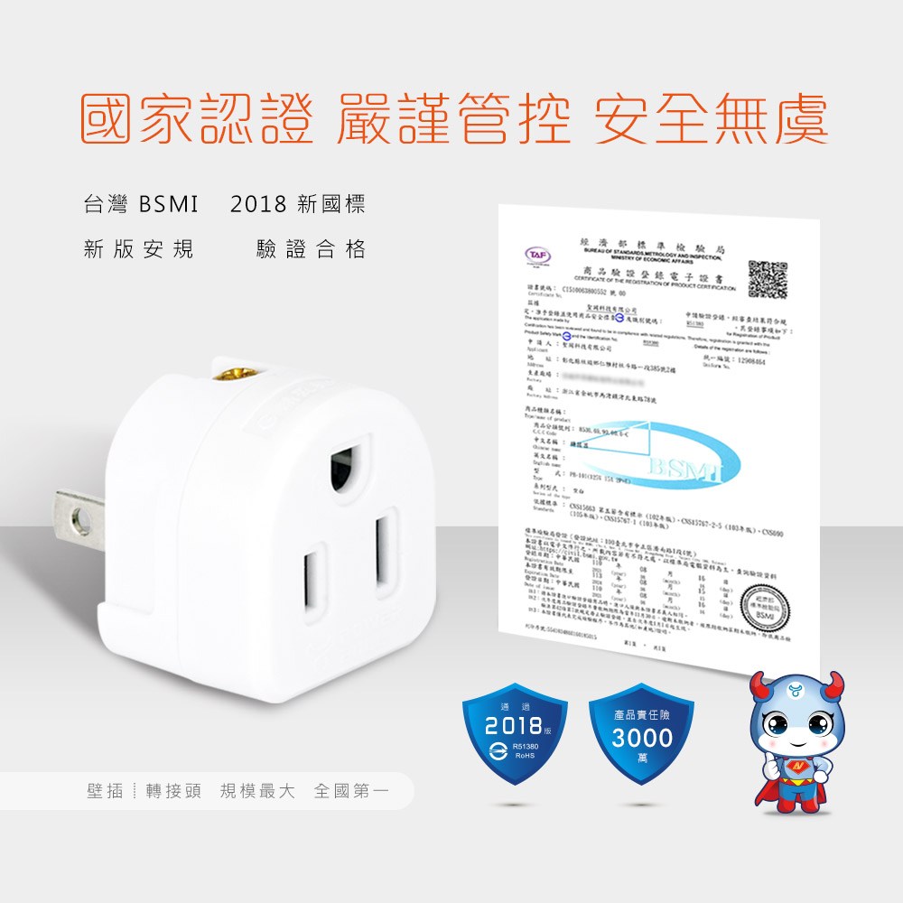 ● 通過BSMI 2018新版安規,安全再升級