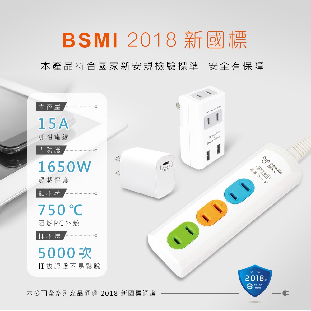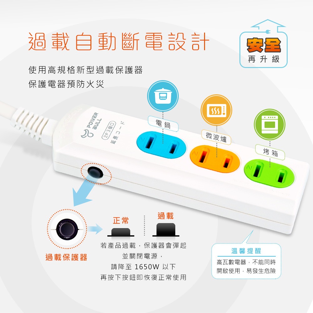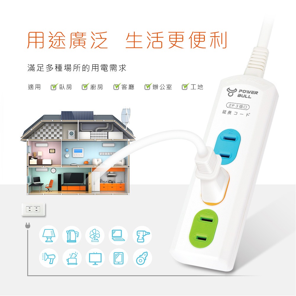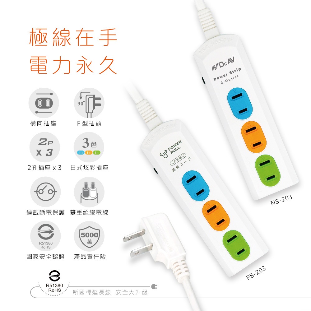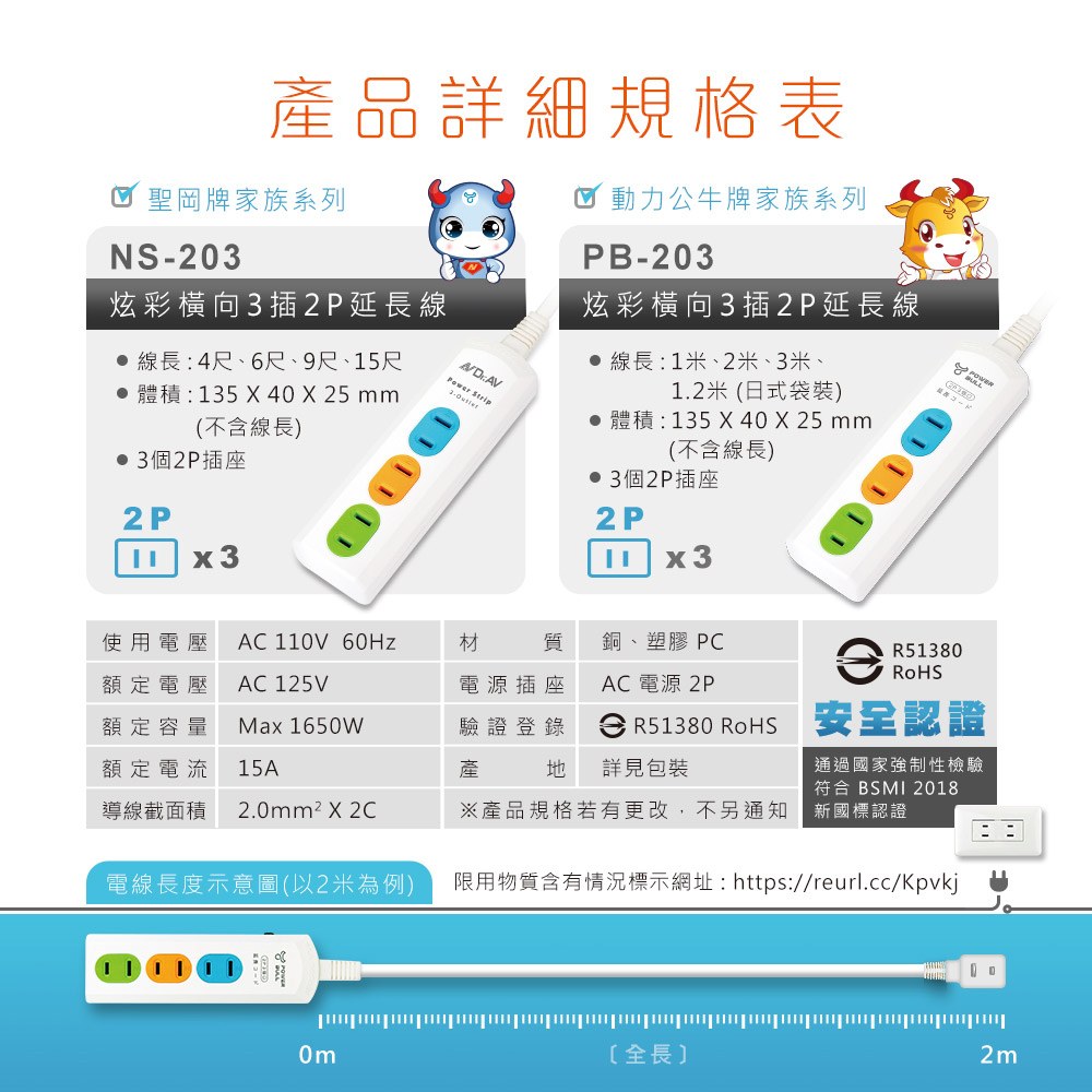 NS-203-15 炫彩橫向3插2P延長線(15尺)