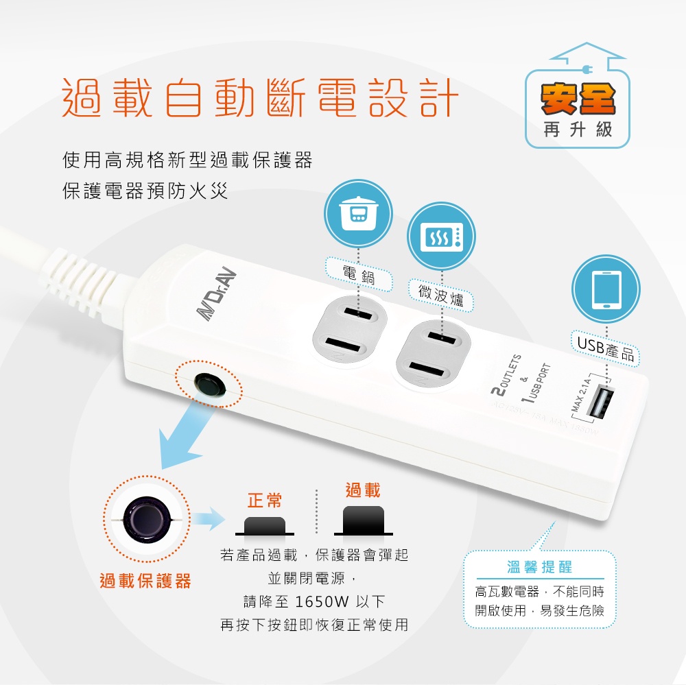 ●過載自動斷電設計,安全再升級
