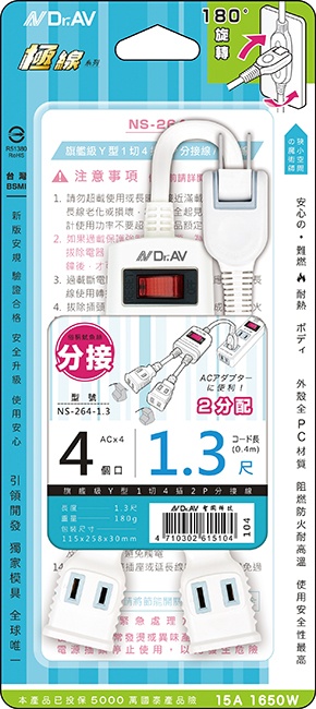 NS-29 旗艦級Y型1切4插2P分接線(1.3/4尺)