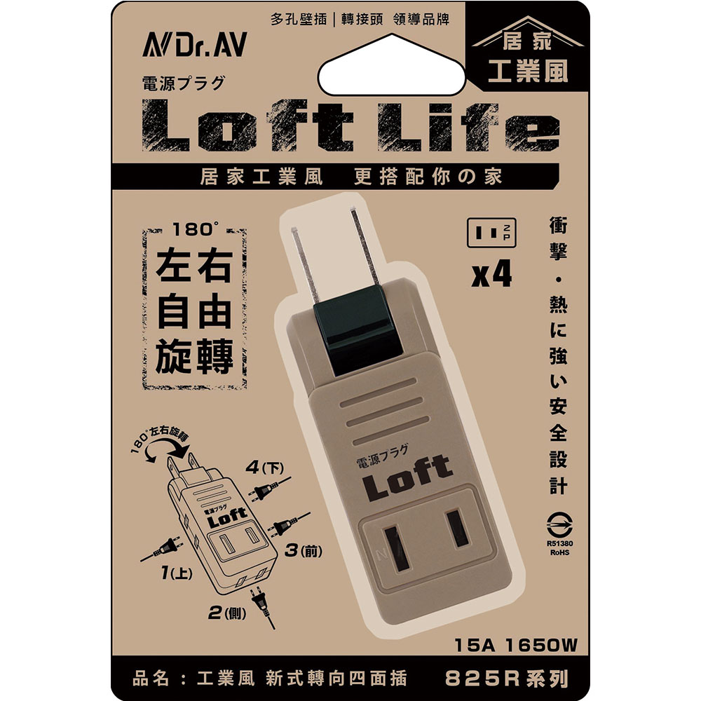 LL-825R 日式轉向四面插(奶茶色/黑色)